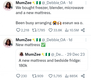 Trending number one on X (former Twitter), the spotlight is on a Nigerian woman fondly known as Mummy Zee or Debbie. The social media buzz was birthed by a now-viral X post she shared about 72 hours ago.