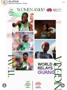 Amusan will compete in the women’s 4x100m relay, alongside Favour Ofili, Chukwuma Rosemary, Umukoro Success, Eyakpobeyan Tiana, and Chukwuka Obi Jennifer.