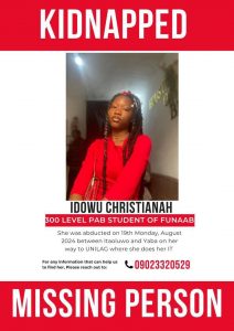 Christiannah’s disappearance was first reported when her parents were contacted by her abductors via her WhatsApp account.