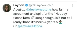 Laycon took to X (formerly Twitter) on Wednesday, 21st August 2024, to express his frustration, stating that he has not received the “agreement and split” payments promised to him. The reality TV star voiced his concerns over what he described as DJ Neptune’s four years of silence, emphasising the importance of honouring agreements within the music industry.