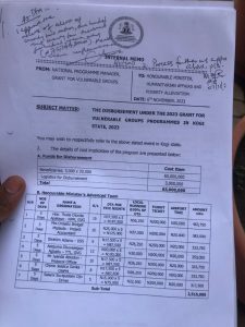 A breakdown of the funds disbursed shows that N72,374,500 was moved to Kogi State on November 6, 2023, through the Director of Finance Account, National Social Investment Agency, just five days before the governorship elections. Recall that the Kogi 2023 elections turned out to be very bloody and riddled with manipulation of the system.