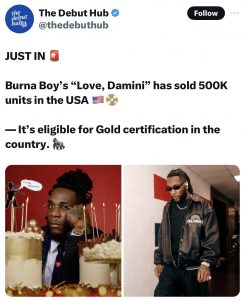 Love, Damini‘s influence isn’t confined to the U.S. market. Internationally, the album has achieved several accolades, including Platinum certification in Denmark for surpassing 20,000 units sold. This recognition places Burna Boy among the few African artists whose work consistently performs well across multiple markets. With its blend of Afro-fusion, dancehall, and pop elements, the album showcases his ability to blend African sounds with global influences.
