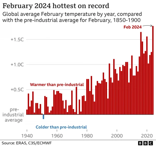 ByEmmanuel EjioforMarch 7, 2024February 2024 marked the hottest February on record globally, with soaring temperatures recorded by Copernicus, the EU’s climate monitoring service. The average global...