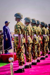 As first reported by ChannelsTv, They arrived at the Yakubu Gowon Airport Heipang aboard a Nigerian Air Force plane at 10:10 am, where they were received by military officials. Matawalle later stood to take the salute alongside the present service chiefs: Minister of Defence Staff, General Gabriel Musa; the Chief of Army Staff, Lieutenant General Taoreed Lagbaja; the Chief of Naval Staff, Vice Admiral Emmanuel Ogalla and the Chief of Air Staff, Air Marshall Hassan Abubakar.
