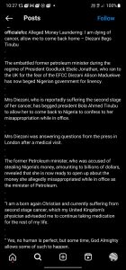 The Economic and Financial Crimes Commission (EFCC) has pulled down an Instagram post quoting former Minister of Petroleum Resources Diezani Allison-Madueke, allegedly speaking on money laundering charges against her and begging the President.