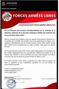 The communique described FAL as an independent organisation founded by patriots committed to Niger’s sovereignty, with no allegiance to foreign states.