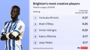Per Sky Sports, it was Minteh who ranked 4th for attempted dribbles and 11th for the most successful crosses in the league, and he had the highest expected assists per 90 minutes of any Brighton player this season.