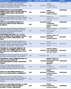 The tables below contain details of projects similar to those executed by Bello and Asher Kine, but with over-inflated budgets.