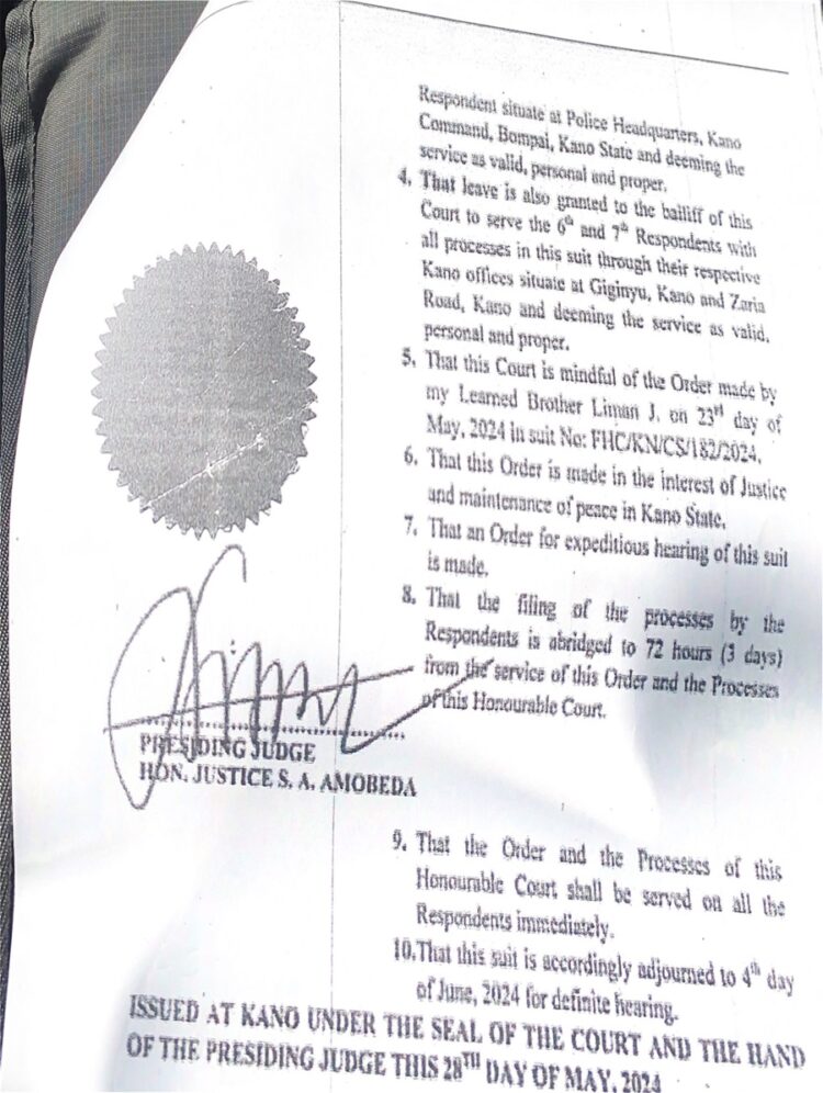 The case, which has the Attorney General of the Federation, the Attorney General of Kano State, and various security agencies as defendants, has been adjourned to June 4, 2024, for further hearing.