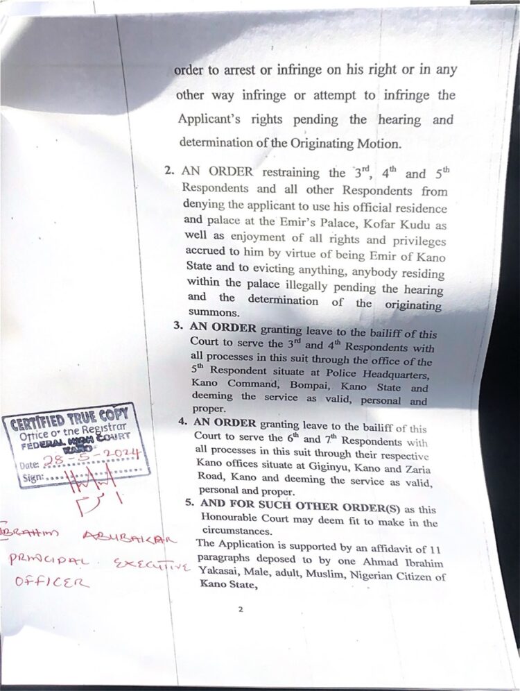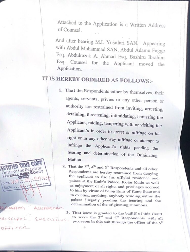 The court’s decision came after an ex-parte motion filed by Aminu Bayero, recently deposed by Governor Abba Yusuf following the repeal of a law that had created additional emirates in the state. Justice Amobeda stated that the order was made to maintain peace and justice in Kano.