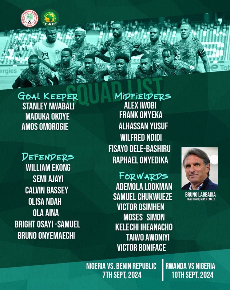 The Super Eagles will face Benin Republic on 7th September 2024, followed by Rwanda on 10th September 2024.