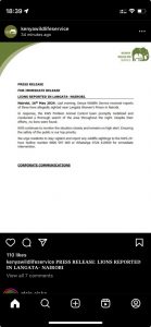 Home News Kenya Wildlife Service Alerts Langata Residents of Roaming Lions, Urges Vigilance