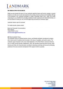 Landmark also announced that it is now looking to partner with three West African countries and two States in Nigeria to develop beachfront tourism in their localities.