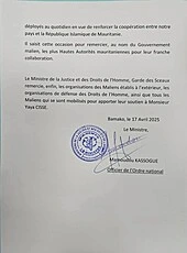 The communiqué praised the efforts of Malian institutions, especially the National State Security Agency (ANSE) and the Ministry for Malians Abroad, for their tireless work in reinforcing international cooperation in judicial matters.