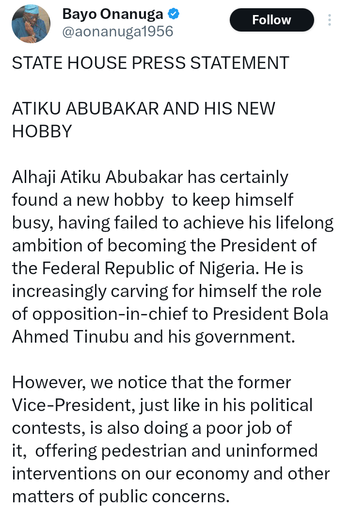 In a related context, a verbal skirmish between the Presidency and former Vice President Atiku Abubakar happened over the weekend.