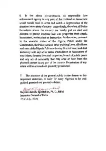 “All officers and men of the Nigeria Police are hereby directed to act and deal decisively with any act of arson, intimidation or harassment of any citizen, threat to lives and properties, breach of peace, and any act of criminality that may arise or flow from the planned protest in any part of the country.