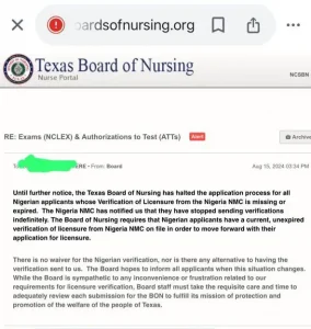 Also, nursing boards abroad have released statements notifying that they would not accept Nigerian applicants due to the bureaucratic hurdles and delays surrounding licence verifications.