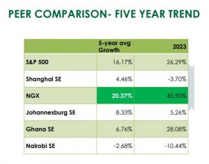 That statement is factual but the irony is that the growth, as noted by Bayo, has made many people poorer and depressed the overall value of the stock market. That is why foreign investors are not coming for that 45% gain because if you made 45% on equity, but lost 50% on currency, with 30% on inflation, you are poorer.”