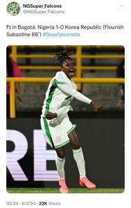 Nigeria’s Falconets began their 2024 FIFA U-20 Women’s World Cup campaign with a hard-fought 1-0 victory over South Korea at the Estadio Metropolitano de Techo.