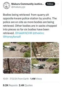 In a statement via X, Odhiambo said it was unacceptable for people to be killed and dumped in a quarry.