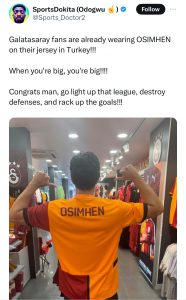 Reports from Turkey suggest that Galatasaray fans are already wearing jerseys with “OSIMHEN” eagerly anticipating the arrival of the prolific striker.