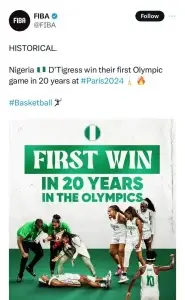 Nigeria’s D’Tigress made a memorable win by thrashing world number three, Australia, with a final score of 75-62.  It turns out to be the first win of Nigeria at the ongoing Paris 2024 Olympics and only the second win so far at the Olympic Games.