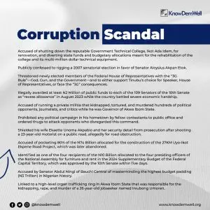 Nigeria’s Senate President, Godswill Obot Akpabio, is facing corruption allegations, many of which date back to his tenure as Governor of Akwa Ibom (2007–2015) and his time as Minister of Niger Delta Affairs. He is currently the Senate President of Nigeria. Despite 24 documented accusations provided by Knowdemwell on X, ranging from financial mismanagement to alleged human rights abuses, he has never been convicted.