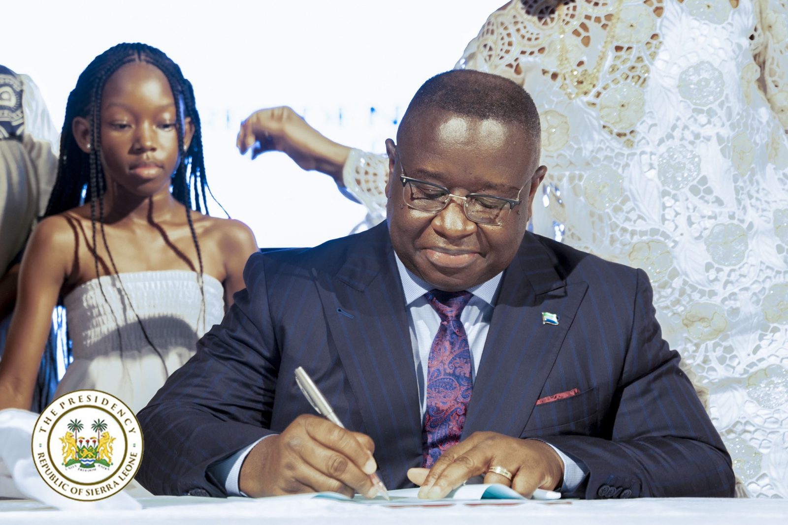 President Julius Maada Bio signing the bill.