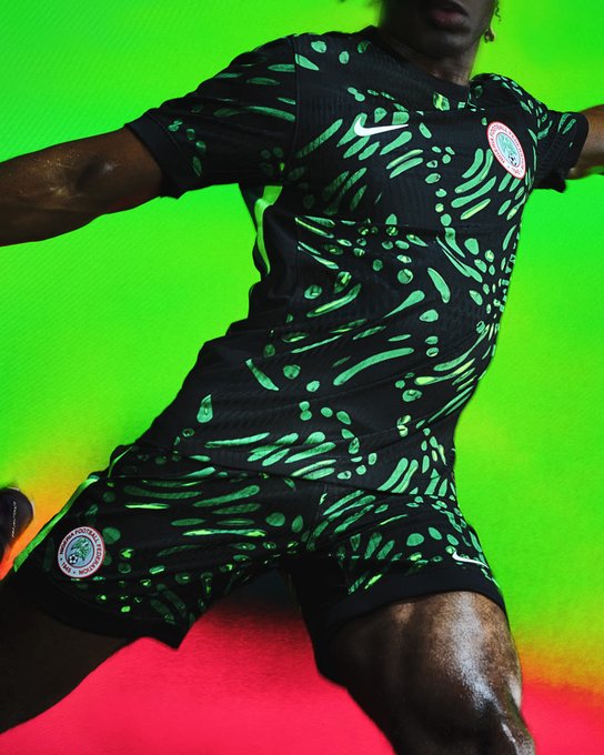 Nike has revealed the new Super Eagles jerseys for the 2024–2025 football season, showcasing bold designs and innovative features. The home jersey features green hoops and the word “Naija” in green, while the away uniform offers a pastel version of the dark green colour.