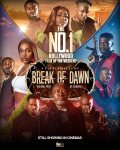 “Break of Dawn” features Kanayo O. Kanayo and Stan Nze in a dark tale where Jade, the daughter of a powerful politician, meets a dangerous client who needs a girl for a money ritual. The film promises suspense and thrilling moments and is available in cinemas.