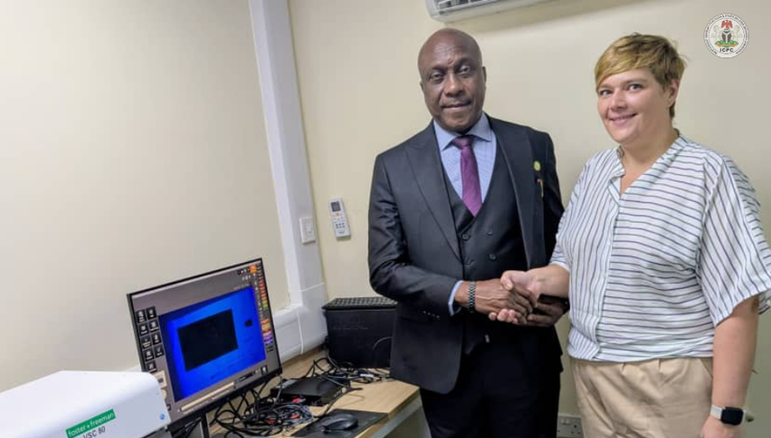On June 26, the British government handed over a VSC 80/FS forensic document workstation to the ICPC’s Lagos office, a move described by both parties as part of their “ongoing cooperation in advancing investigative capacity and institutional efficiency.” The device was formally received by the Lagos Resident Anti-Corruption Commissioner, Chukwurah Alexander, from Ms. Hannah Chatterton, representing the UK High Commission.