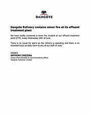 Fire outbreak at Dangote Refinery pic.twitter.com/s0YMxWC0JD