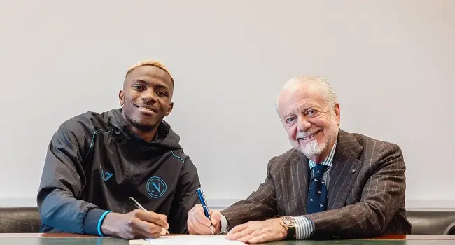 The official confirmation was made via Napoli’s social media channels, showcasing a momentous picture capturing Osimhen’s contract signing alongside club owner Aurelio De Laurentiis.